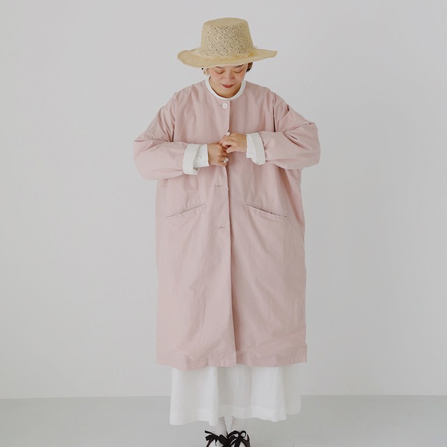 やわらかな色合いで、ゆったりとしたシンプルなシルエットのジャケットを国産近江晒し加工の繊細な綿生地で作りました。 裏地も国産のオーガニックコットンと一部縞模様のコットンを使用。ポケットからのぞく縞模様がシンプルな中にもかわいらしさを引き立てます。 【デザイン】 ゆったりとしたシルエットはさりげなく体型をカバーしつつ、洗練したコーディネートを楽しめます。 どんな色にも合わせやすいオリーブ色とさくら色で、春秋の着用にぴったりです。 【カラー】 オリーブグリーン / 桜色 【素材】 表地:100% 綿 裏地:100% 綿 近江晒し加工で、柔らかな肌ざわりを残した生地を使用しました。表面のシボもナチュラルな風合いをひきたたせています。 【お手入れ】 冷水での手洗い可、ドライクリーニング可。 洗濯機での洗濯及び乾燥機の使用不可、漂白剤の使用不可。 size 単位:cm サイズ 着丈 肩幅 胸囲 裾周 袖丈 袖巾 袖口 S 101 75 139 146 41 44 27.5 M 104 77 143 150 42.5 45 28.5 商品によっては若干の誤差が生じてしまいます。 予めご了承ください。 モデルの身長 158cm 着用サイズ :M