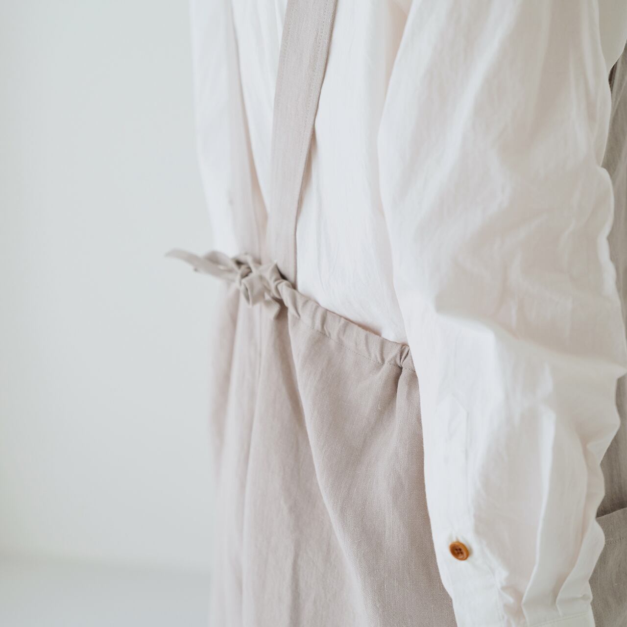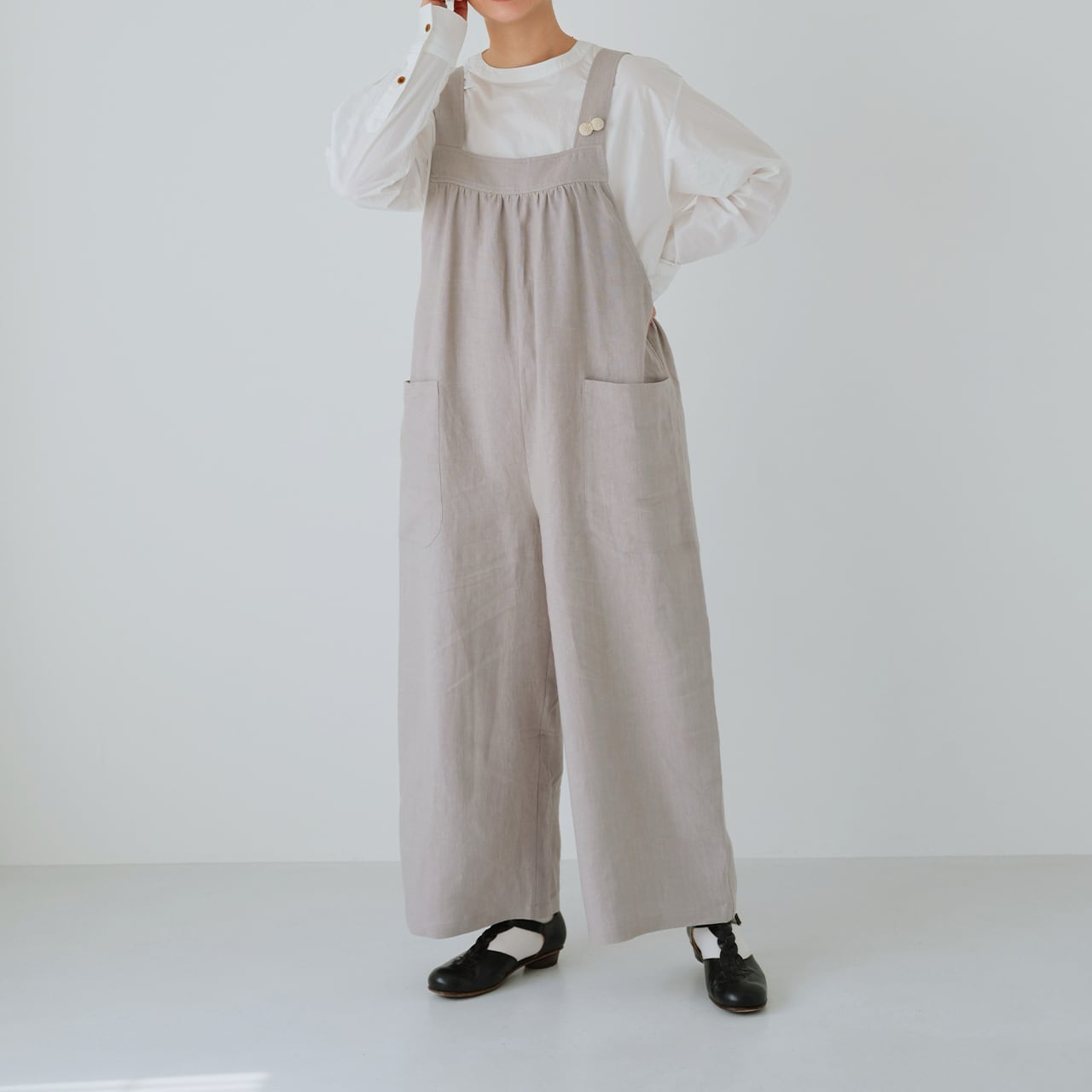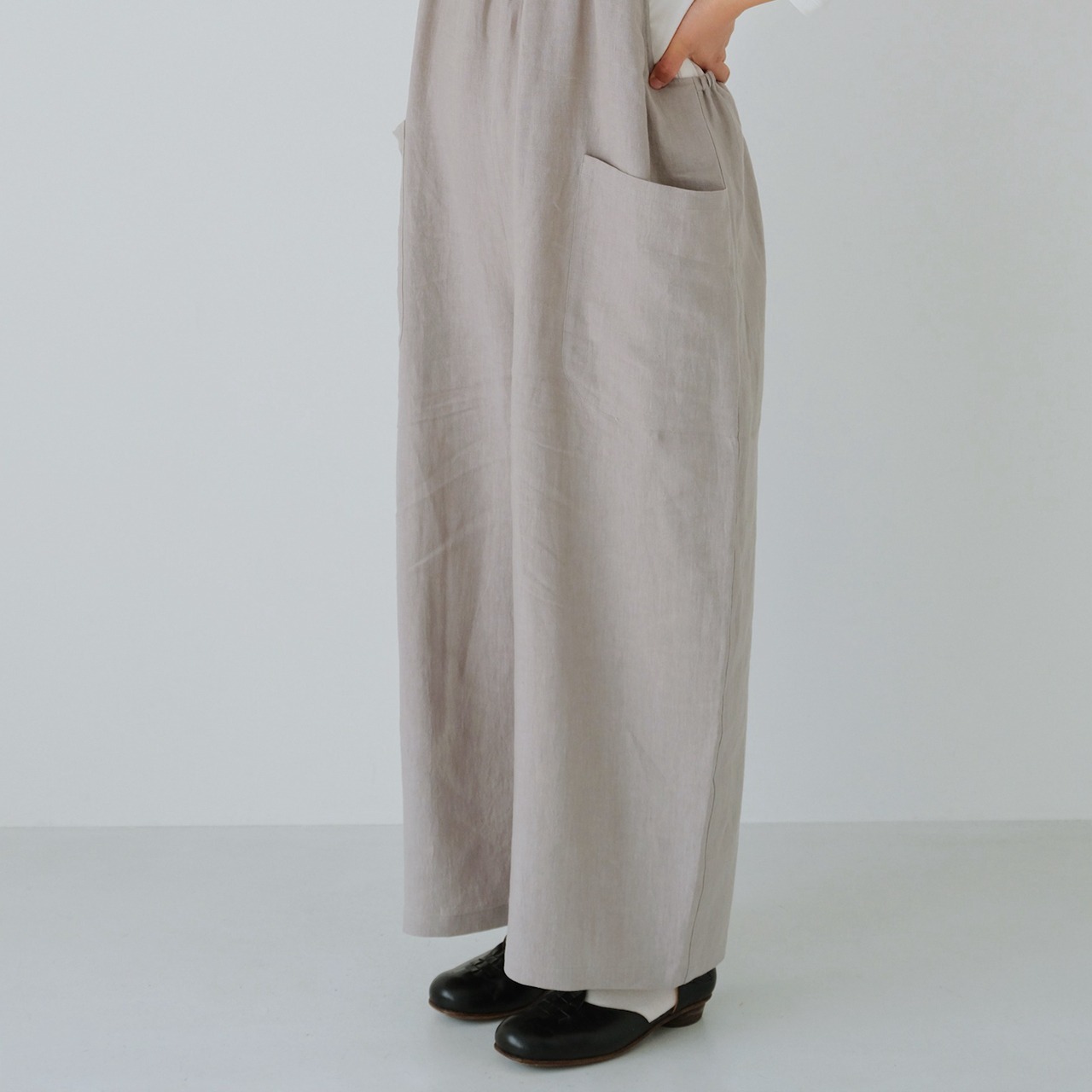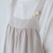 ナチュラルな風合いと優しい肌触りが隅々まで感じられる日産リネン生地は、スタッフの手染めによって深みのある色合いに重ね染めされている。 ナチュラル感たっぷりの生地は、さらりとはきたくなるパンツに仕上がっている。 ゆったりとしたパンツの形は脚を自由に動かし、ストラップのラインは肩まで緩やかに上がり、後ろウエストのストラップは腰幅を調整でき、ポケットは心の中の小さな日常が収まる大きさなので、憧れの日本製バックパンツになるはずだ!