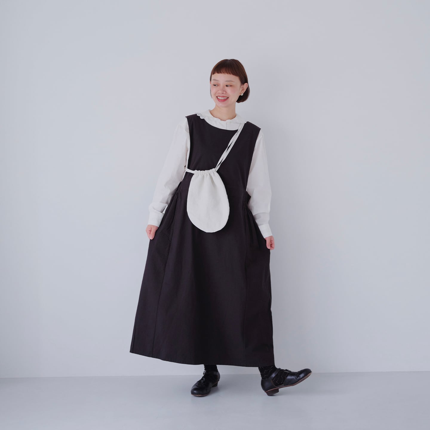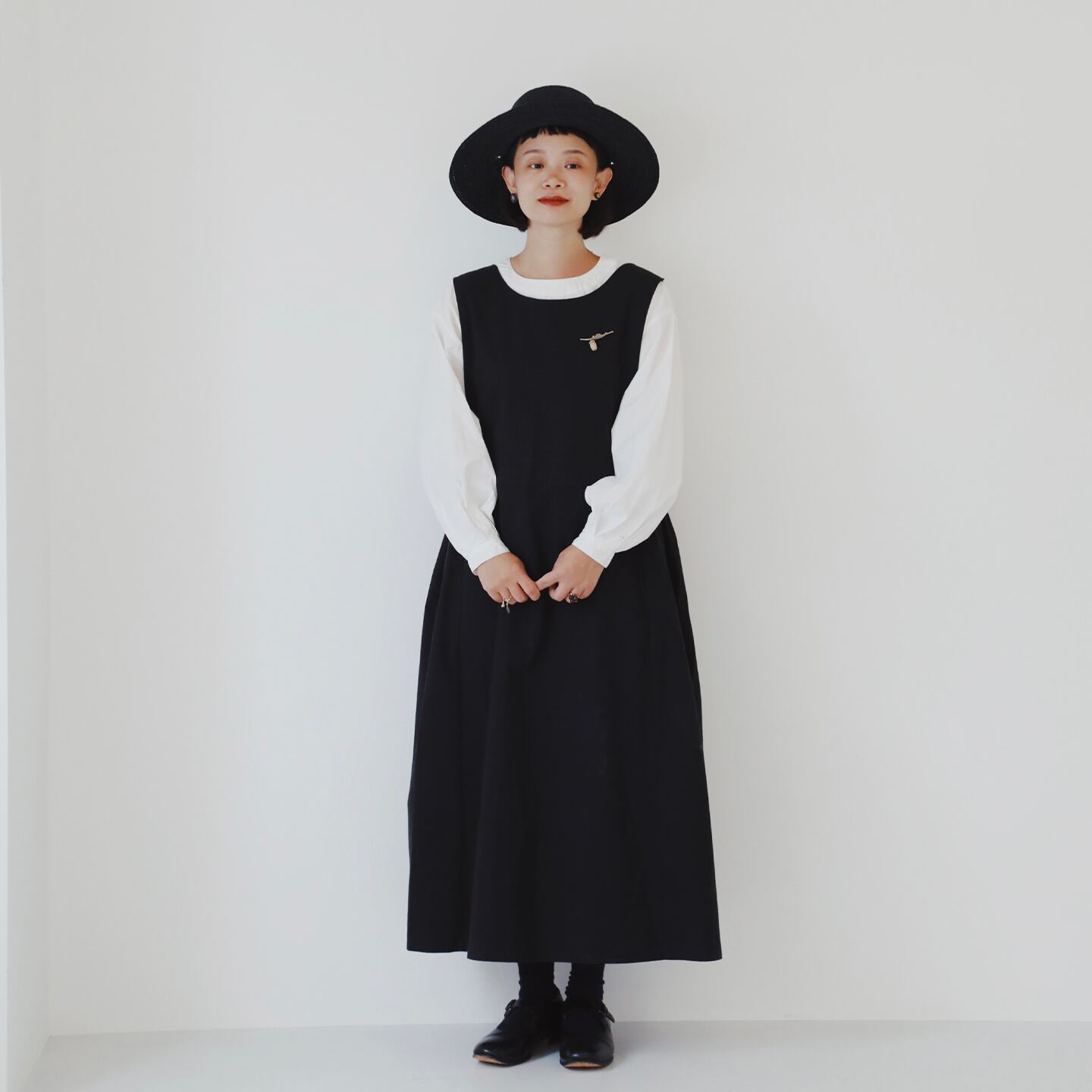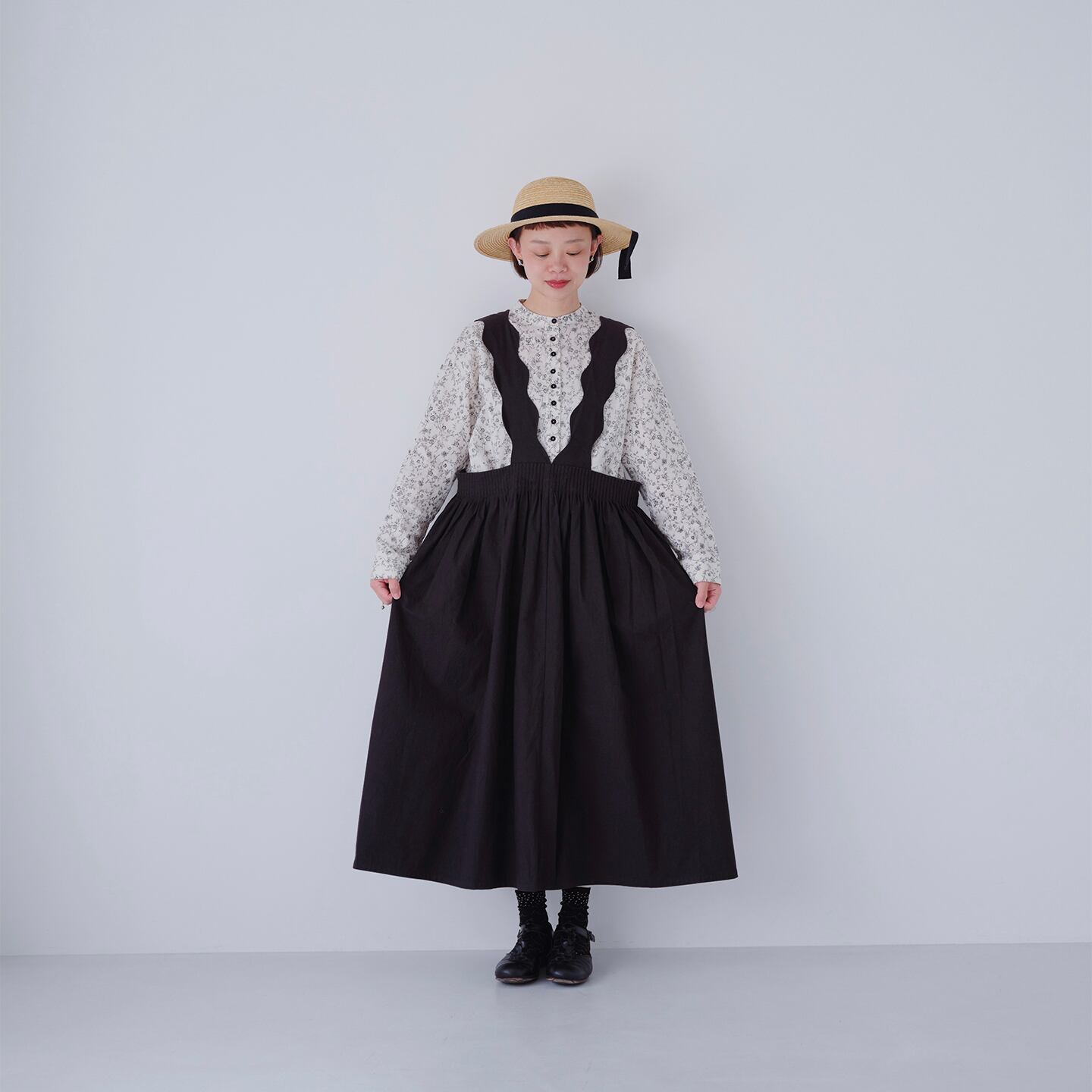 dookkara 前後に黒の波模様が入ったワンピース